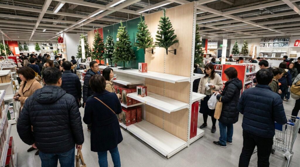 IKEAのクリスマス商品(VINTERFINTコレクションなど)は、毎年非常に人気が高く、シーズン本番の12月に入る前に主要なアイテムが完売してしまうことも珍しくありません。特に、近年の住宅事情にマッチした壁掛けタイプや、120cm〜150cm程度の扱いやすいサイズのツリーは、競争率が激しく、早い段階で在庫切れになる傾向があります。
