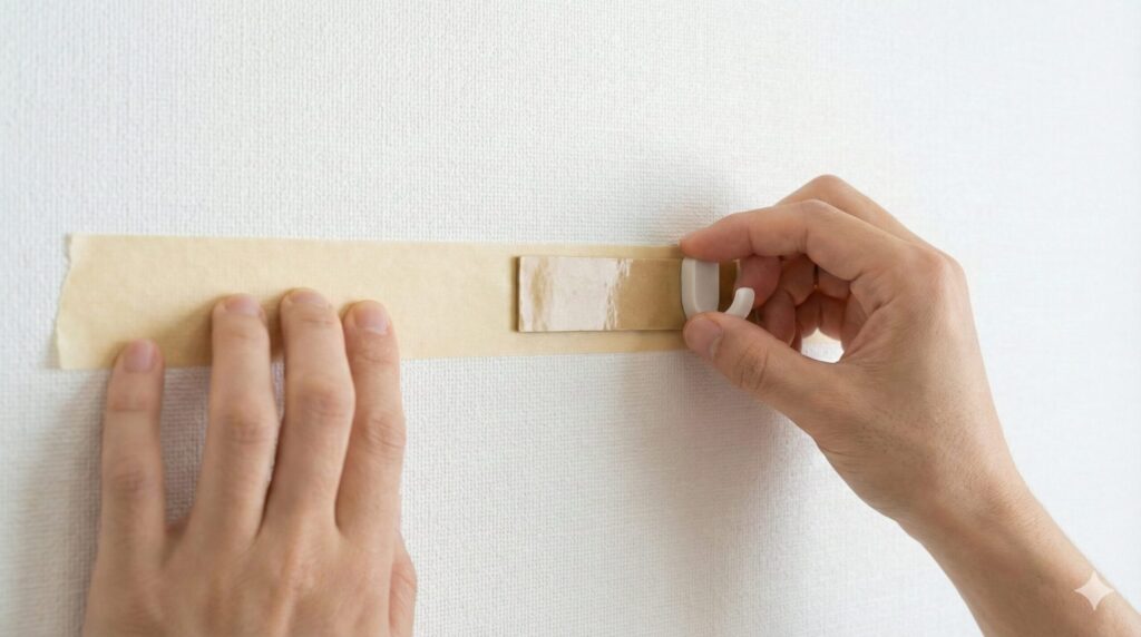 このサンドイッチ構造にすることで、剥がすときは一番下のマスキングテープごと綺麗に剥がせるため、壁紙を傷めるリスクを最小限に抑えられます。