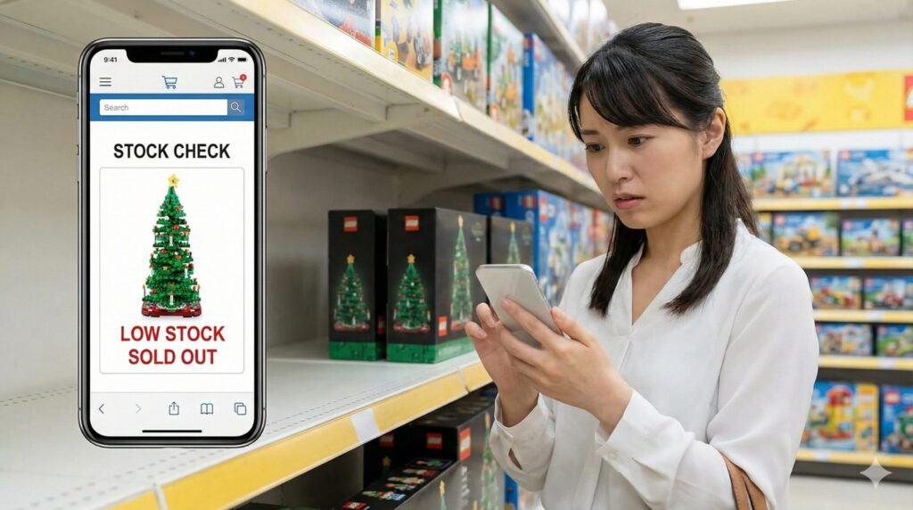 逆に、カタログに掲載されていない商品は入荷数が少ない可能性があるため、早めの確保が必要です。lego クリスマス ツリー(特に40573)は例年カタログに掲載されますが、掲載されているからといって安心は禁物です。「カタログを見て買いに来た」という膨大な需要が発生するため、カタログ配布直後の週末が最初の売り切れのピークとなります。